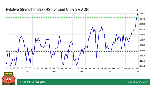 I found you an Overbought RSI (Relative Strength Index) on the daily chart of Enel Chile SA ADR. Is that bullish or bearish? $ENIC #RsiOverbought #NYSE