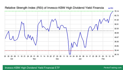 I found you an Overbought RSI (Relative Strength Index) on the daily chart of Invesco KBW High Dividend Yield Financial ETF. Is that bullish or bearish? $KBWD#RsiOverbought#NASDAQ