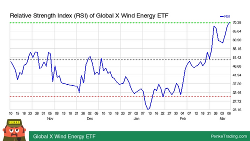 I found you an Overbought RSI (Relative Strength Index) on the daily chart of Global X Wind Energy ETF. Is that bullish or bearish? $WNDY#rsioverbought#nasdaq