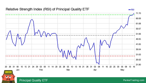 I found you an Overbought RSI (Relative Strength Index) on the daily chart of Principal Quality ETF. Is that bullish or bearish? $PSET#rsioverbought#nasdaq