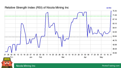 I found you an Overbought RSI (Relative Strength Index) on the daily chart of Nicola Mining Inc. Is that bullish or bearish? $HUSIF#rsioverbought#otcqb