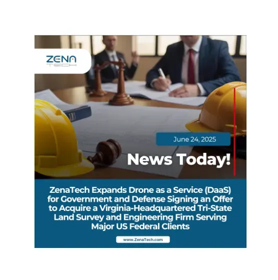 VANCOUVER, British Columbia, June 24, 2025 (GLOBE NEWSWIRE) -- ZenaTech, Inc. (Nasdaq: ZENA) (FSE: 49Q) (BMV: ZENA) (“ZenaTech”), a technology company specializing in AI (Artificial Intelligence) drones, Drone as a Service (DaaS), enterprise SaaS, and Quantum Computing solutions, announces it has signed an offer to acquire a Virginia-headquartered land survey and civil engineering firm with operations in three states and expertise serving major US federal government agencies and regional infrastructure programs. Upon completion, this acquisition would mark ZenaTech’s first entry into the states of Virginia, North Carolina, and South Carolina, accelerating the Company’s expansion across the Southeast region of the US.